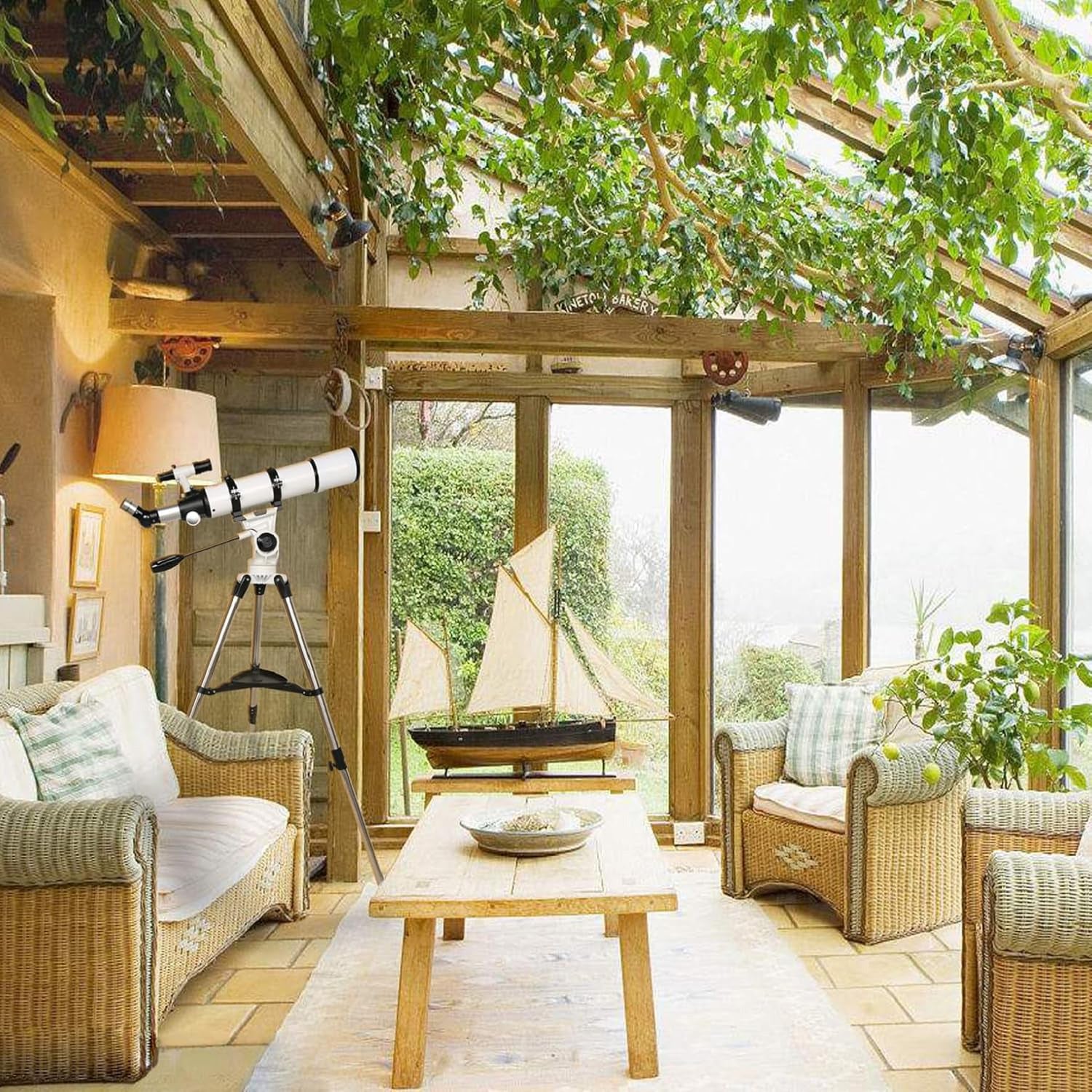 【Adjustable Tripod】This telescope allows for many different viewing positions with a adjustable aluminum tripod. The height of aluminum tripod can be adjusted from about 31.5-inch to 49-inch