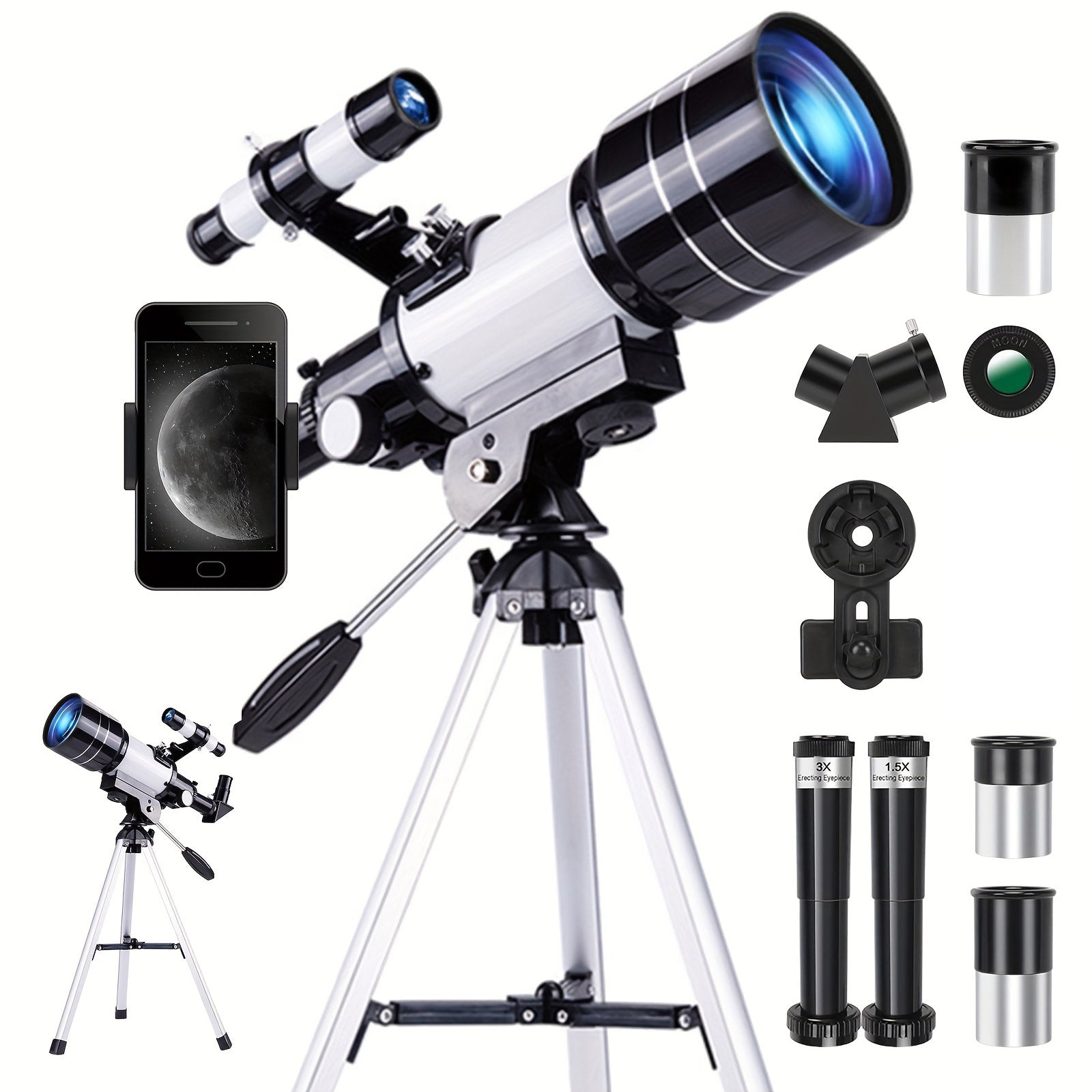 UBSSO 150X High Power Telescope, 70mm Aperture Telescope Astronomy For Adults, Portable Monocular Telescope With 3 Eyepiece white+black