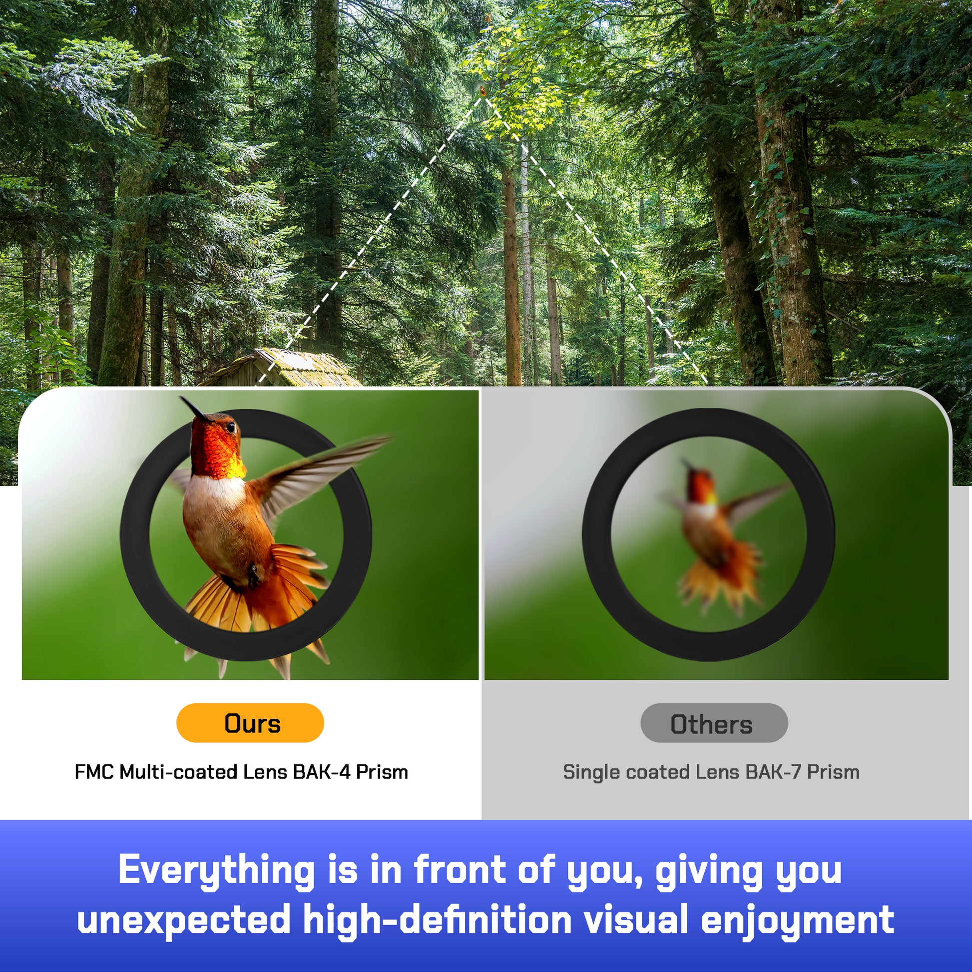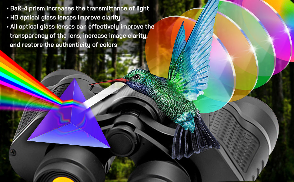 80*80 High Powered Binoculars with 50mm Ocular Lens  high - quality BAK4 prisms. With a high refractive index, BAK4 prisms can reflect light more effectively, achieving a light - reflection rate close to 100%. This minimizes light loss during the optical path, presenting you with vivid, sharp, and edge - clear images, free from the dark - edge phenomenon often seen in lower - quality binoculars. Whether you're observing distant landscapes, wildlife, or details at a sports event, the BAK4 prism ensures every view is a visual treat.