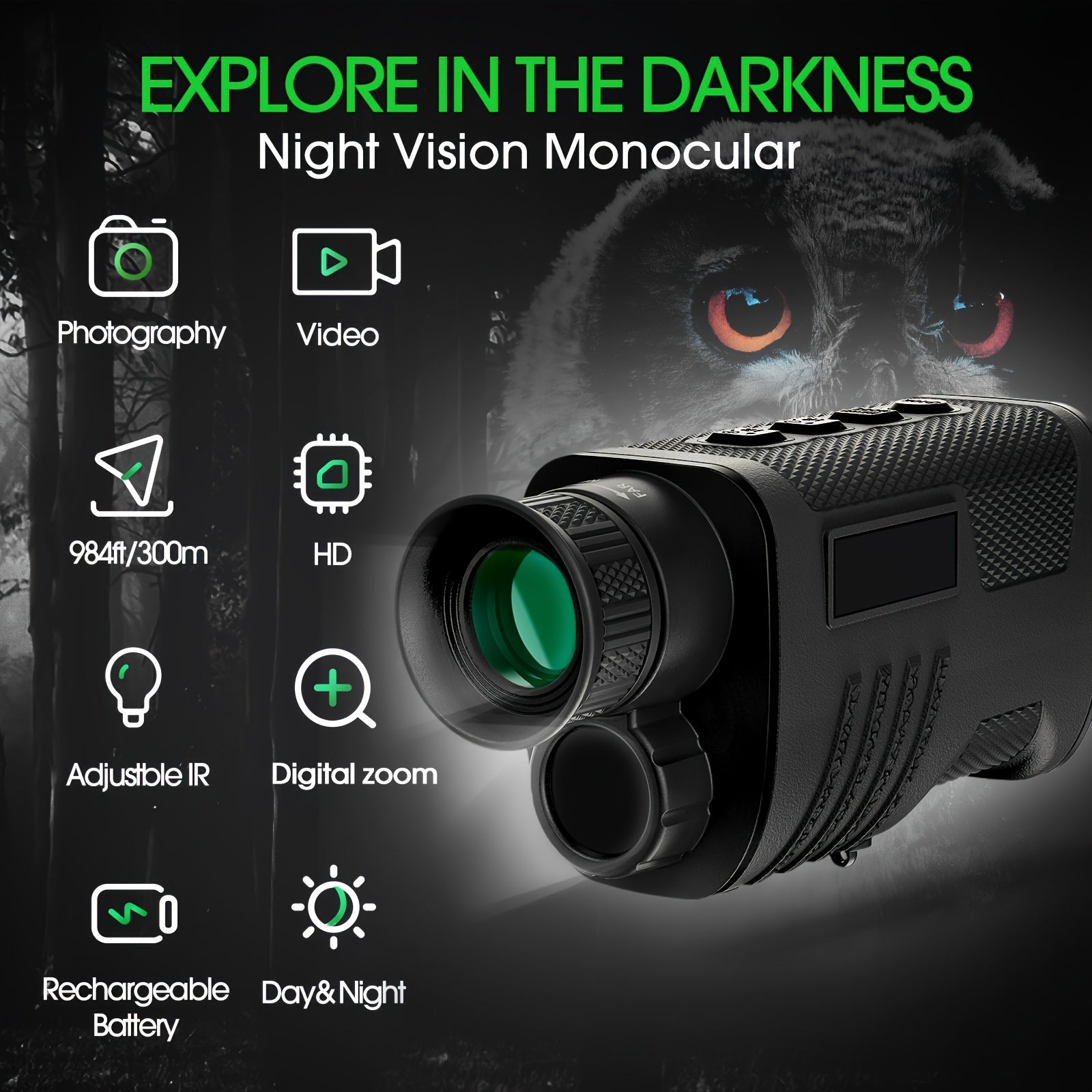 UBSSO Digital Infrared Vision Monocular Telescope 4K Digital Infrared with 2" Larger Screen, 8X Digital Zoom, Gray for Hunting,Fishing,Camping, Green