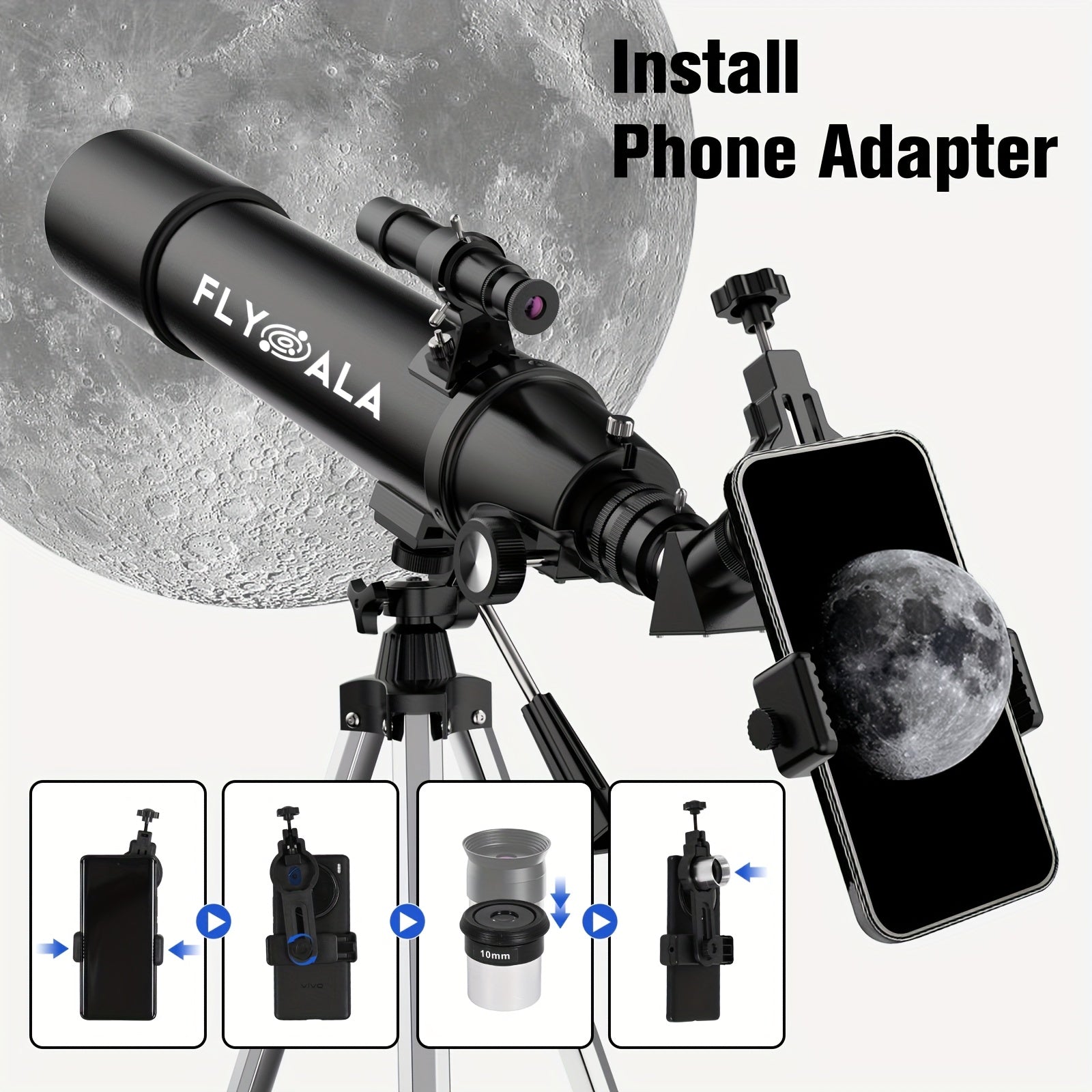 Deluxe Configuration: Free smartphone adapter and wireless camera remote control included, allowing you to take photos remotely after mounting your smartphone;The 3 color filters are: NO.12,NO.82A,MOON, Install filters to reduce light pollution.